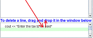 - While holding the mouse pressed, drag the statement down to the trash window