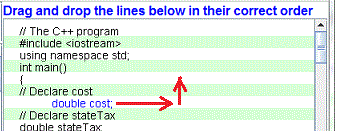 - While holding the mouse pressed, drag the statement up or down in the answer window