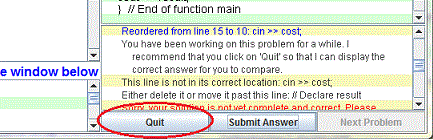 - If your program is still incorrect after several attempts, you will get the option to quit