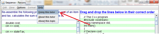 Click on Help menu and select Using this tutor