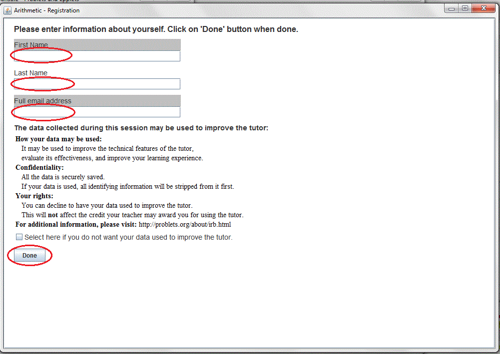 Instructions for using Problets