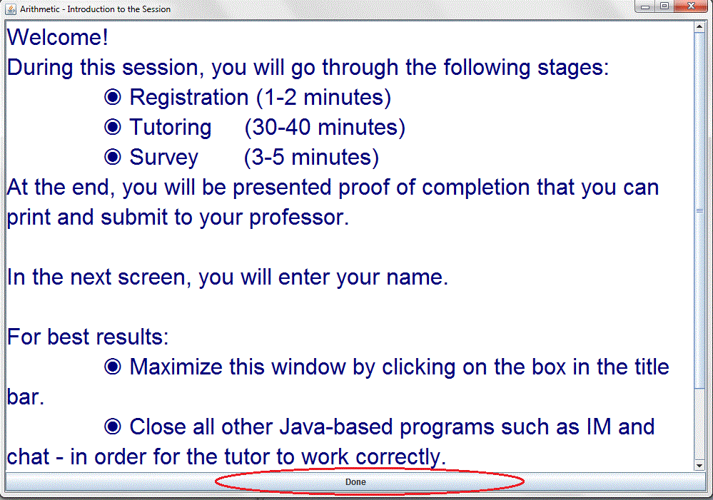 subsequent screens till you get to the tutor.
